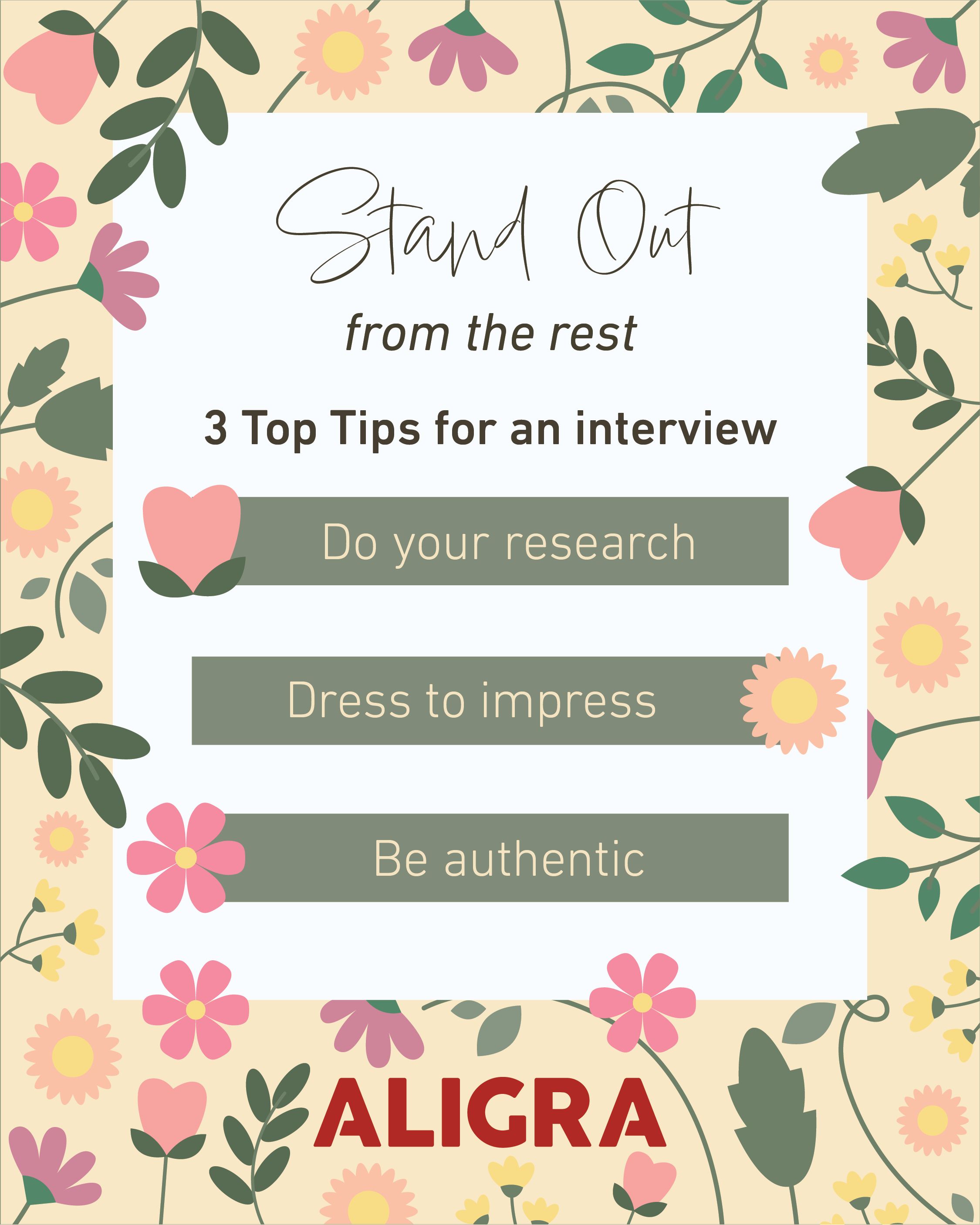 Interview coming up? Keep it simple and do the basics well 🌼 Research the company, dress for the role, and be yourself from the first hello 🤝 More job search support here 👉 https://aligra.co.uk/ #InterviewTips #JobSearchUK #CareerAdvice #UKJobs #Aligra